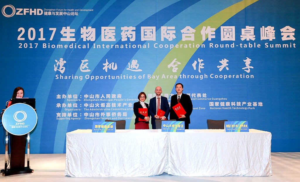 生物醫(yī)藥國際合作圓桌峰會(huì)以“灣區(qū)機(jī)遇,合作共享”為主題,與德國工商大會(huì)廣州代表處合作舉辦,邀請(qǐng)了香港、澳門醫(yī)藥政策法規(guī)專家、跨國企業(yè)代表、創(chuàng)新醫(yī)藥企業(yè)家等齊聚中山,通過港澳醫(yī)藥制度介紹、醫(yī)藥審評(píng)審批新政解讀、國際合作經(jīng)驗(yàn)分享,交流粵港澳大灣區(qū)機(jī)遇下健康產(chǎn)業(yè)創(chuàng)新創(chuàng)業(yè)、成果轉(zhuǎn)化、投融資等方面合作機(jī)會(huì)。