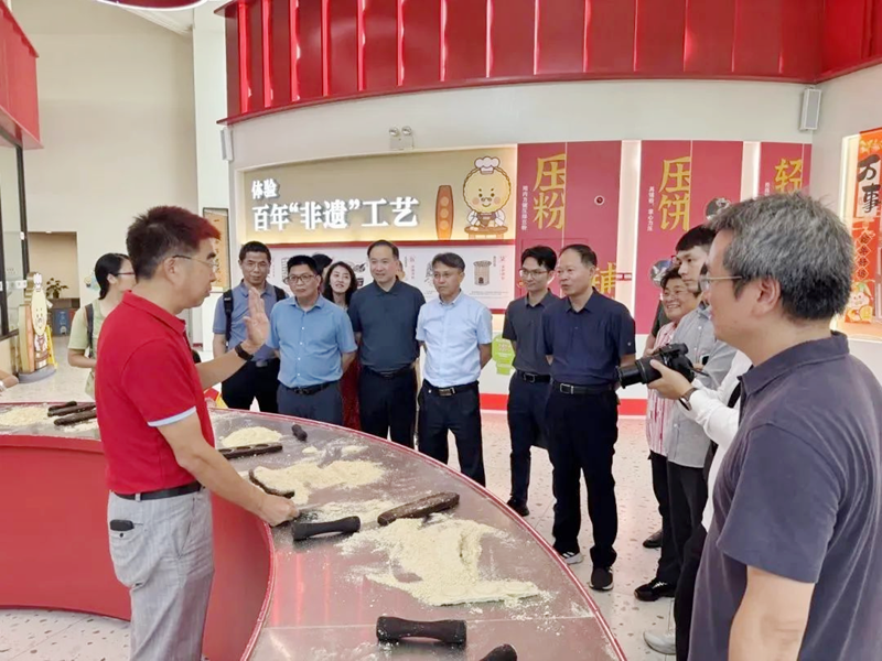 走進(jìn)咀香園,中山市勞模和工匠人才創(chuàng)新工作室領(lǐng)銜人張延杰引導(dǎo)專家團(tuán)參觀非遺技藝展示區(qū),了解傳統(tǒng)食品工業(yè)既要堅(jiān)守“老味道”的底蘊(yùn),也要積極探索創(chuàng)新發(fā)展路徑的做法,共同探討傳統(tǒng)特色產(chǎn)業(yè)探索現(xiàn)代化創(chuàng)新發(fā)展的有效路徑。